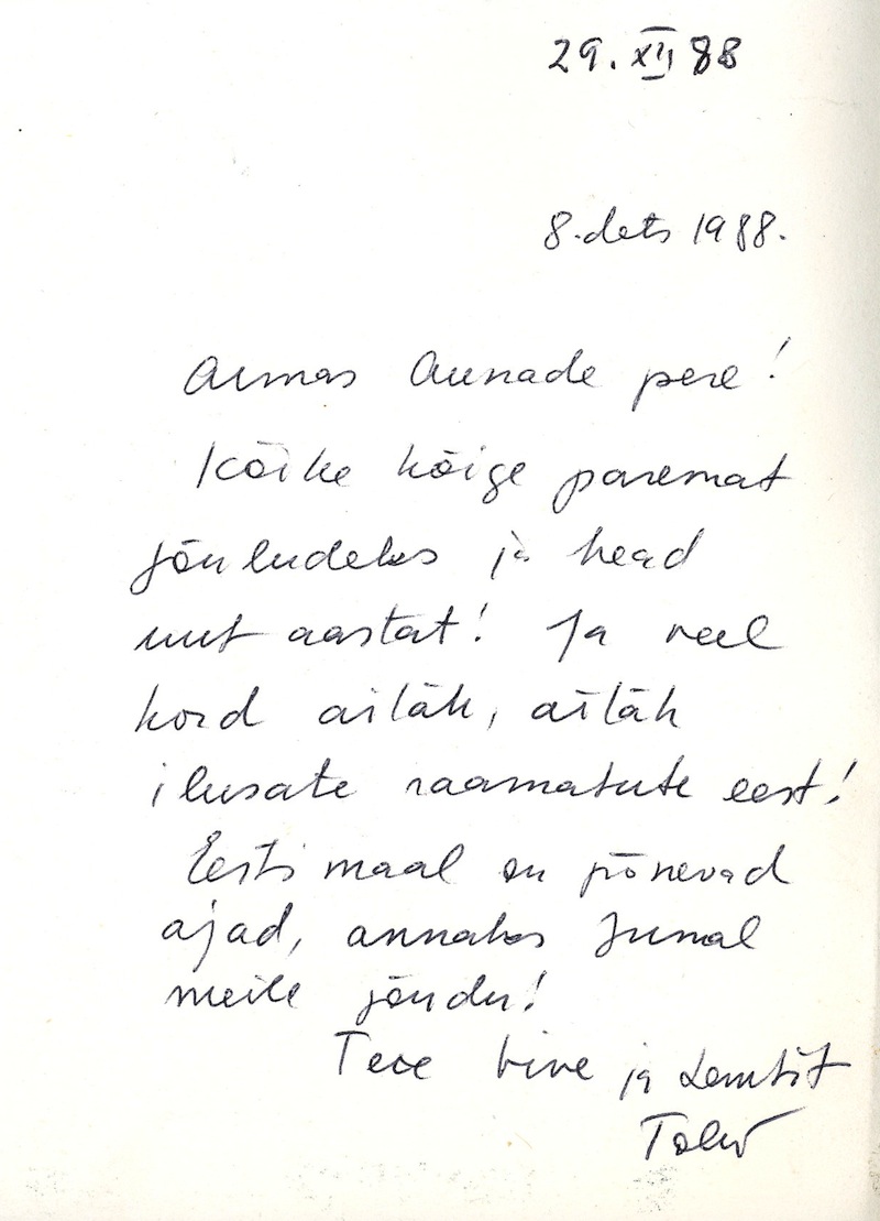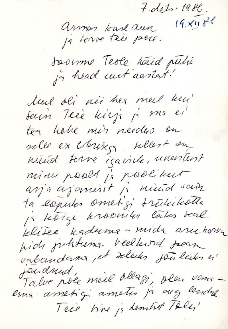 Viive Tolli’s Christmas cards to Karl Aun  1986-1990