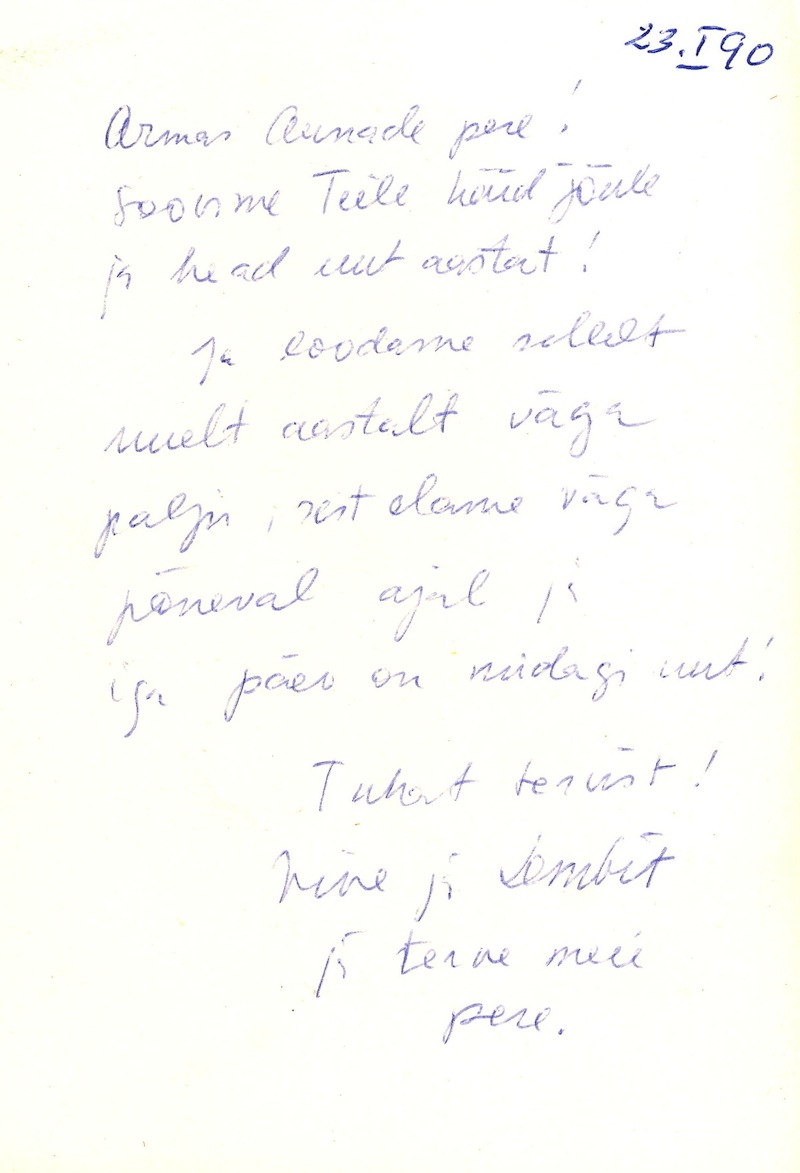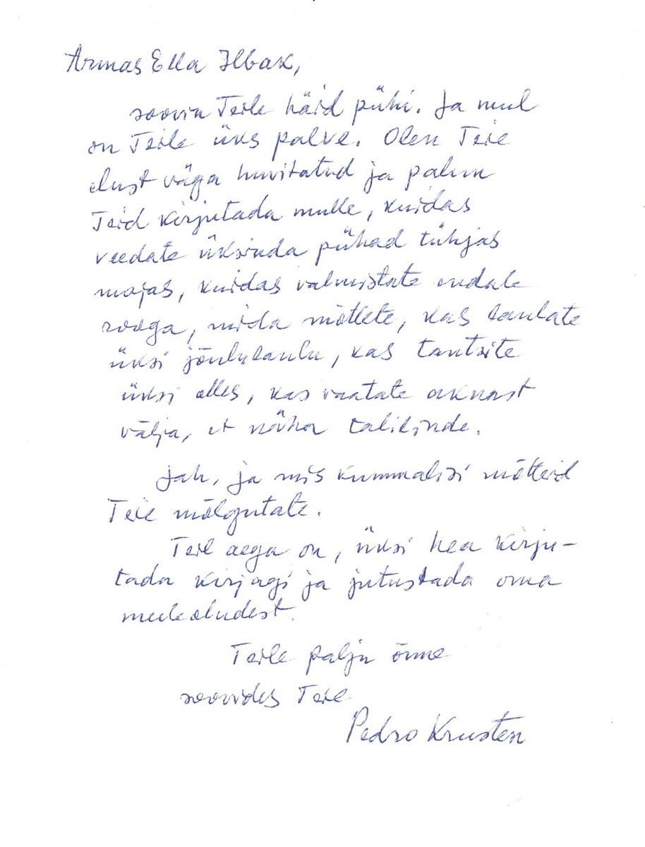 Pedro Krusten’s letter to Ella Ilbak. No date. On the verso a quotationfrom