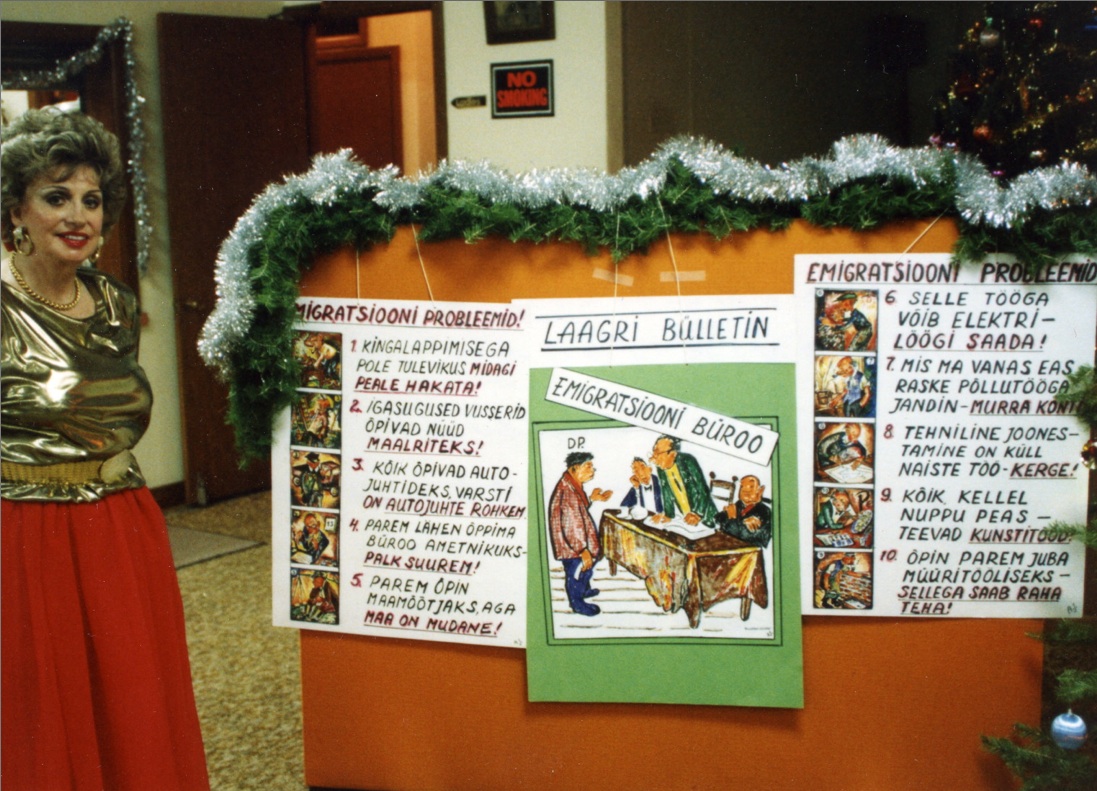 Asta Jostman with the decorations she made “The Bulletin of the DP Camp” 8.12.1991.