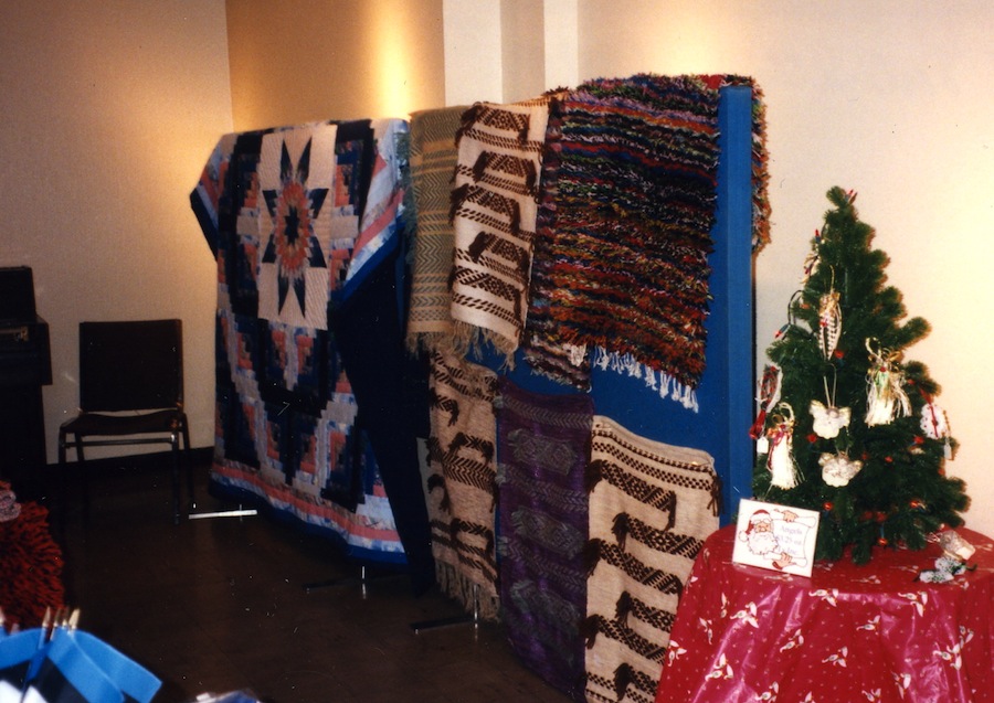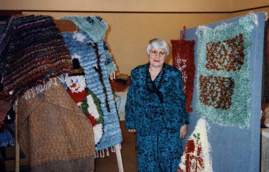 Ella Jostman, a member of the Estonian Association of St. Catharines selling her textiles as they are exhibited at the Estonian House in Toronto. 1990’s.